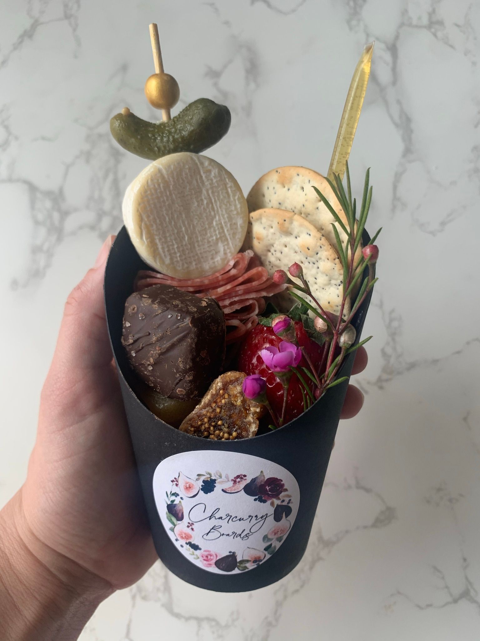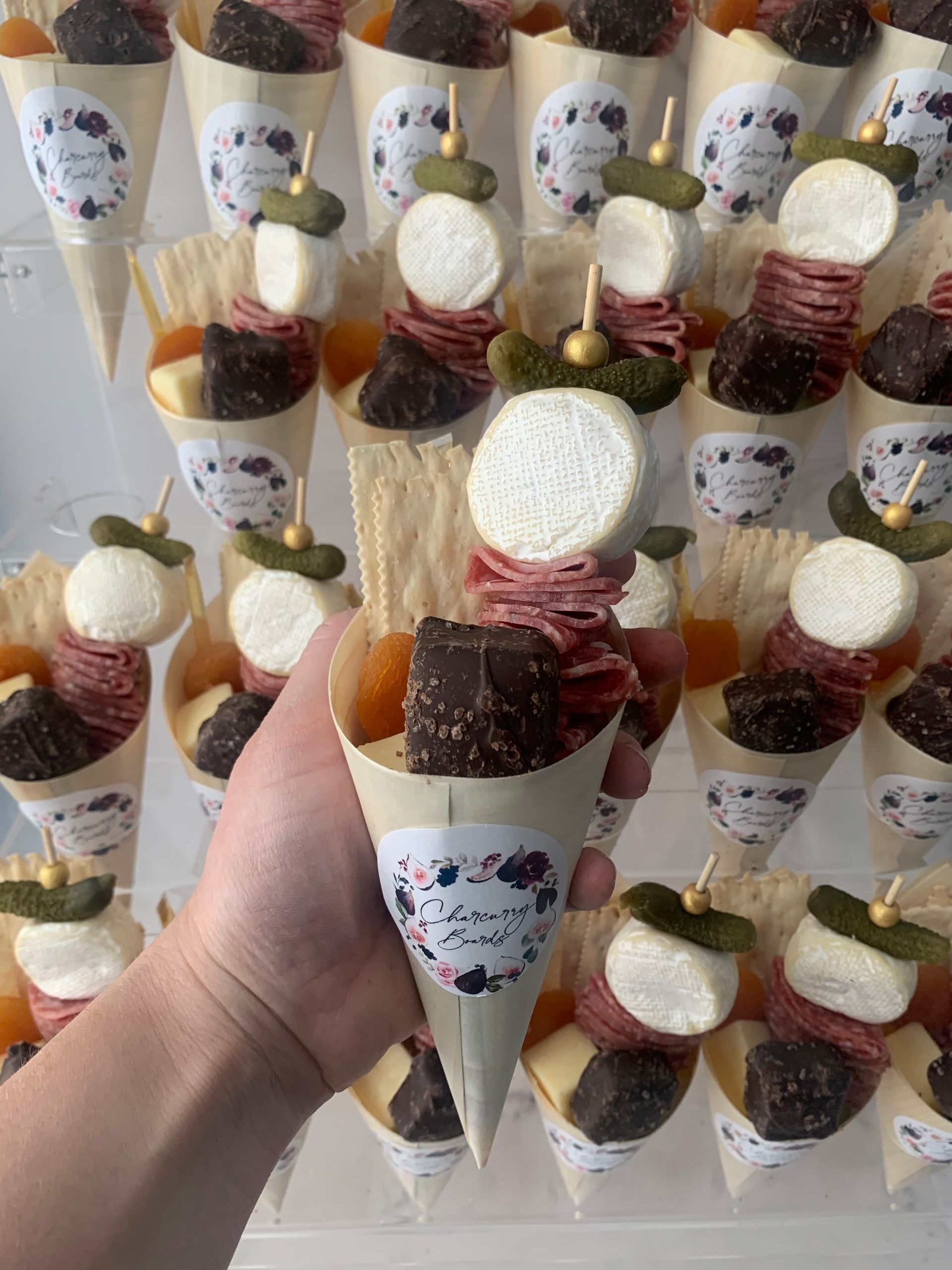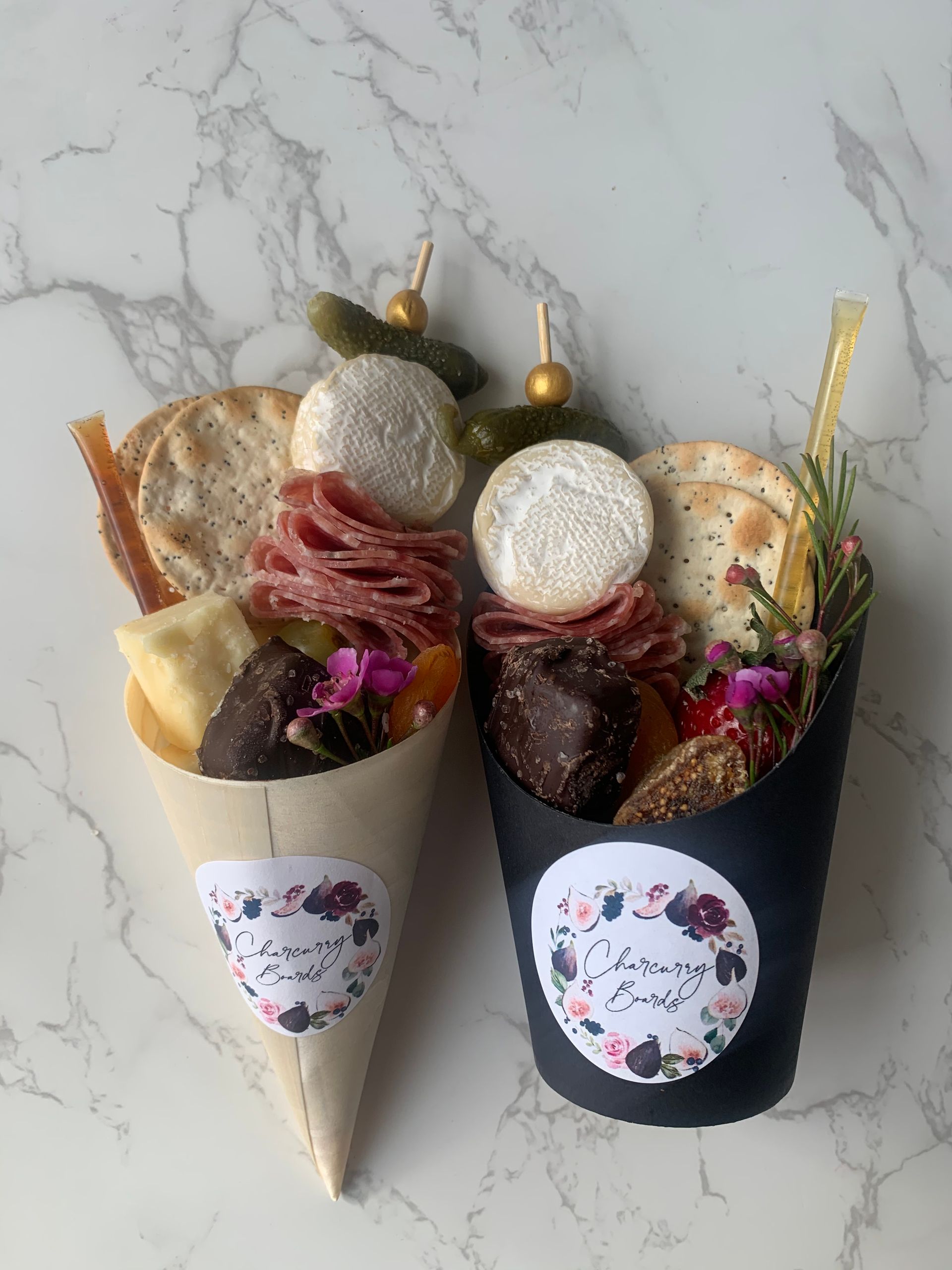 5 premium cheeses, 5 premium charcuterie meats, local honey, jam, mustard, season fruit, and artisan crackers served on the side.