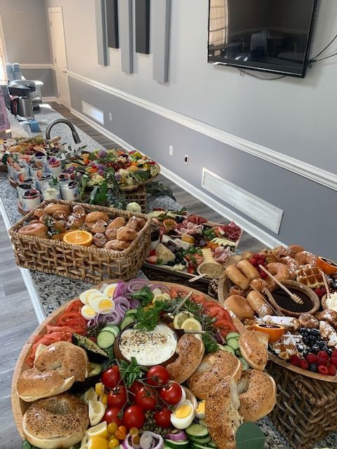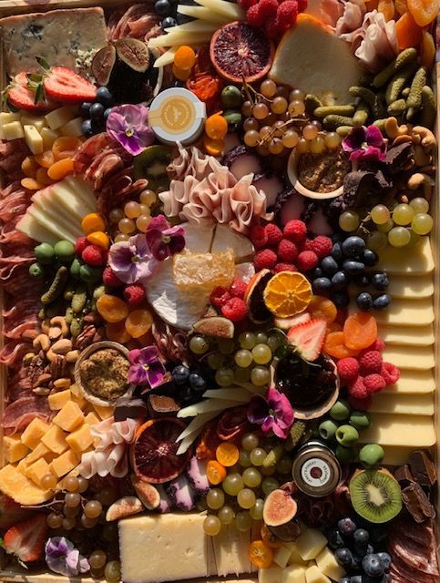 8 cheeses, 6 charcuterie meats, seasonal fruit, 3 seasonal jams, local honey and crackers served on the side.